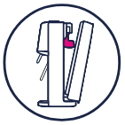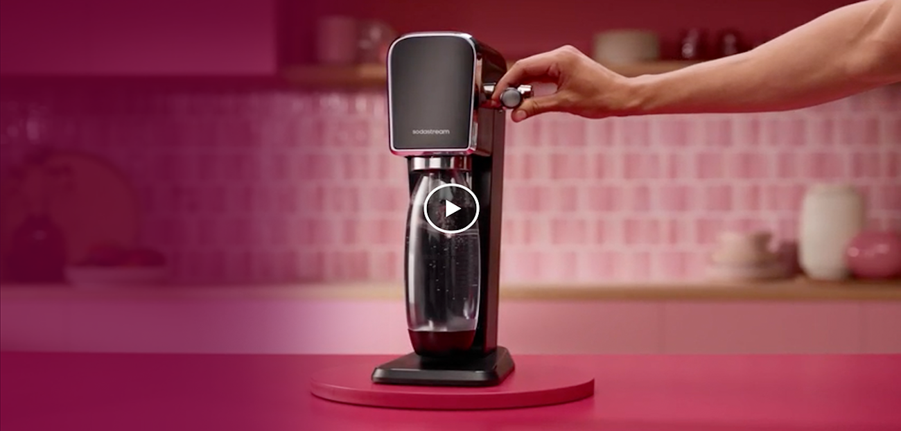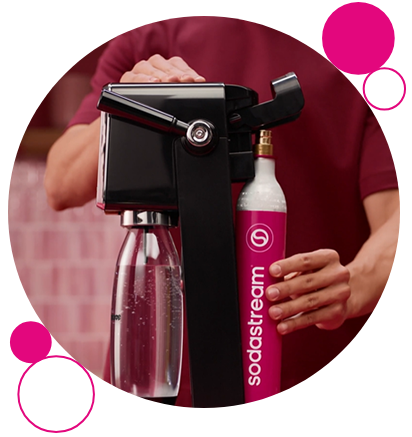 Włóż różowy nabój z gazem Sodastream w miejscu przeznaczonym do montażu, zaczynając od dołu. Opuść różową dźwignię Quick Connect.
